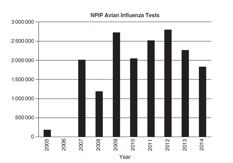 Gambar. 8.1 Jumlah pengujian surveilans avian influenza dalam Rencana Perbaikan Unggas Nasional di Amerika Serikat untuk tahun 2005 dan 2007-2014.
