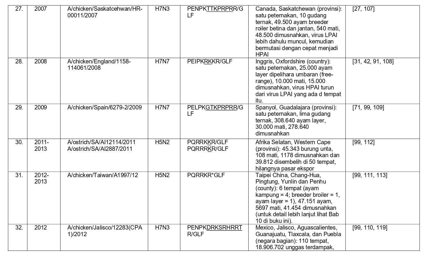 - Virus LPAI H7N2 yang menginfeksi 32.000 ayam layer dalam satu flok tunggal di Rhode Island selama 2003 [143, 181]
