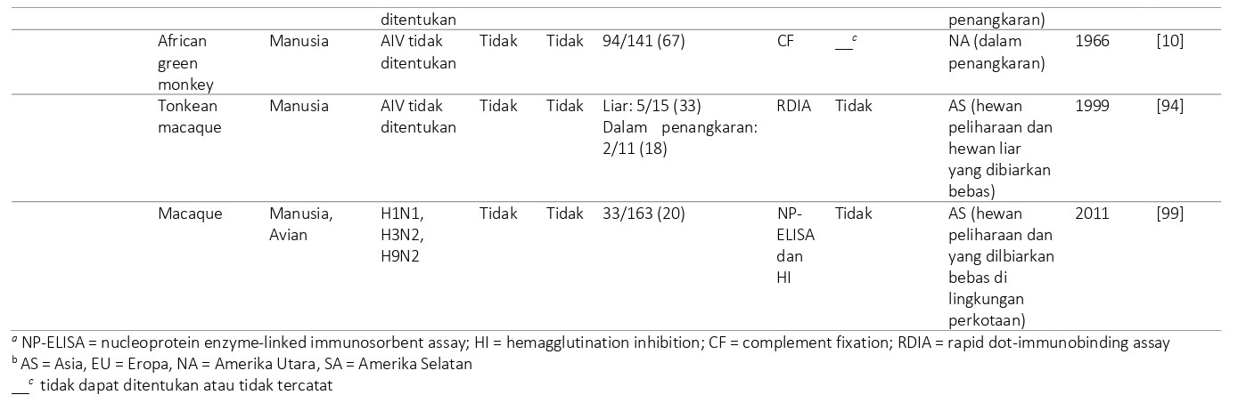 Virus-virus influenza pada primata selain manusia (non human primates/NHP)